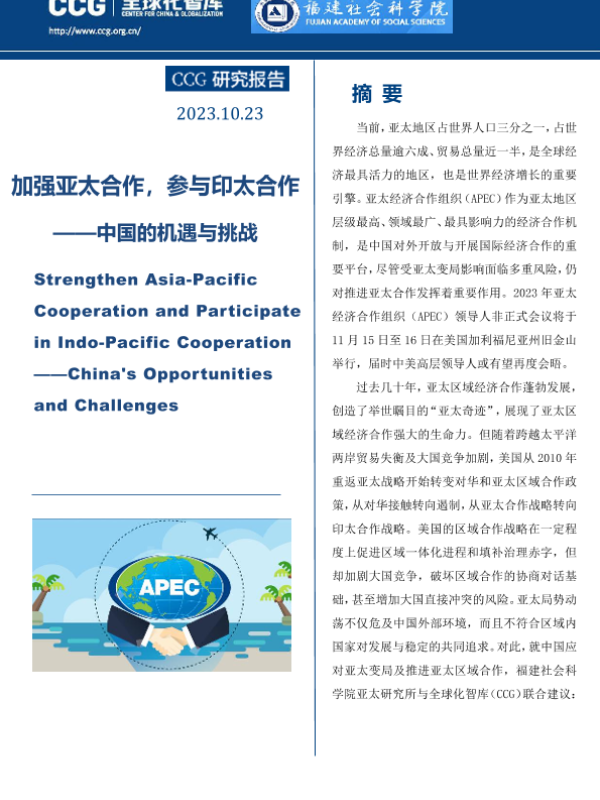 【全球化智库(CCG)】【20231023】加强亚太合作参与印太合作:中国的机遇与挑战-104页 行业研究
