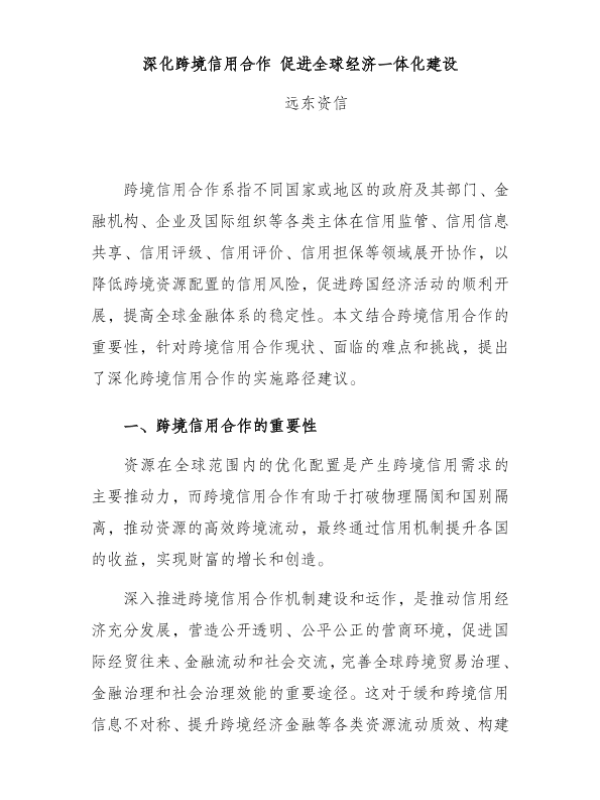 【远东资信】【2024】深化跨境信用合作 促进全球经济一体化建设-7页 行业研究