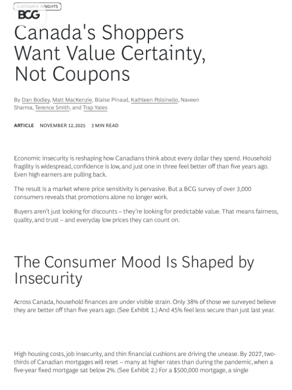 【Boston Consulting Group】【202511】Canada's Shoppers Want Value Certainty, Not Coupons-6页 市场调研