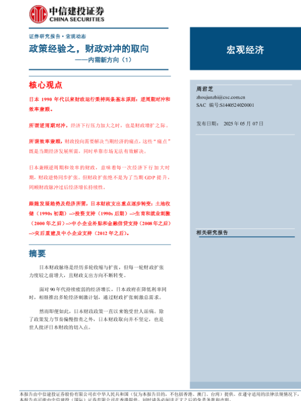 【中信建投证券】【20250507】内需新方向(1):政策经验之,财政对冲的取向-23页 宏观策略