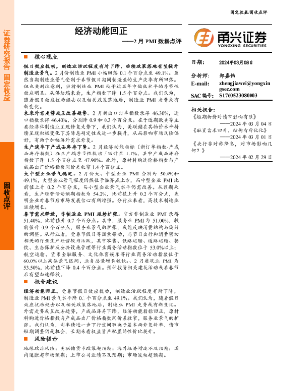 【甬兴证券】【20240308】2月PMI数据点评:经济动能回正-10页 行业研究
