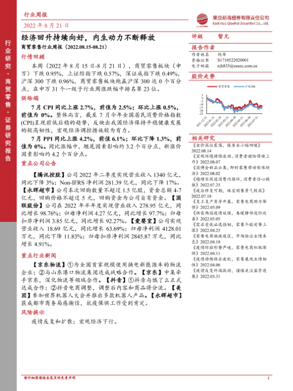 【东亚前海证券】【20220821】商贸零售行业周报:经济回升持续向好,内生动力不断释放-16页 行业研究