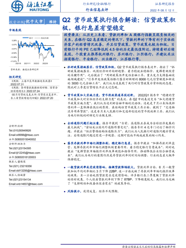【海通证券】【20220812】Q2货币政策执行报告解读:信贷政策积极,银行息差有望稳定-2页 行业研究