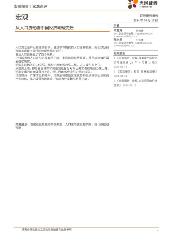 【天风证券】【20240415】从人口流动看中国经济地理变迁-10页 行业研究