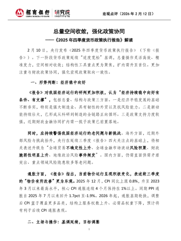 【招商银行】【202602】总量空间收敛,强化政策协同——《2025年四季度货币政策执行报告》解读-6页 政策文件