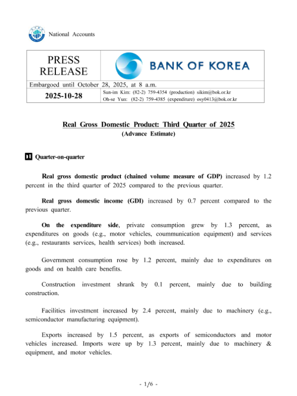 【Bank of Korea】【2025】Real Gross Domestic Product Third Quarter of 2025 (Advance Estimate)-6页 宏观策略