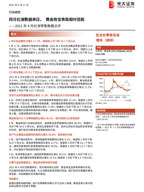 【光大证券】【20210517】2021年4月社消零售数据点评-7页 行业研究