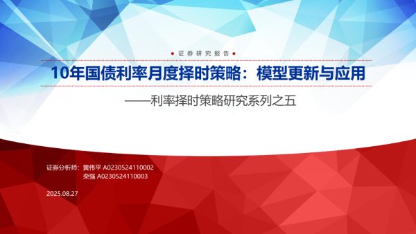 【申万宏源】【202507】10年国债利率月度择时策略:模型更新与应用-33页 证券期货研究报告