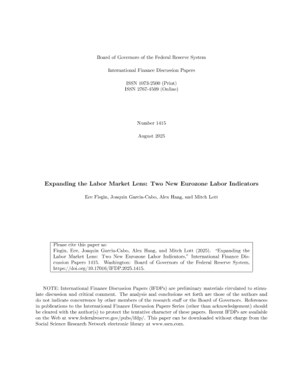 【Board of Governors of the Federal Reserve System】【202508】Expanding the Labor Market Lens Two New Eurozone Labor Indicators-27页 学术论文