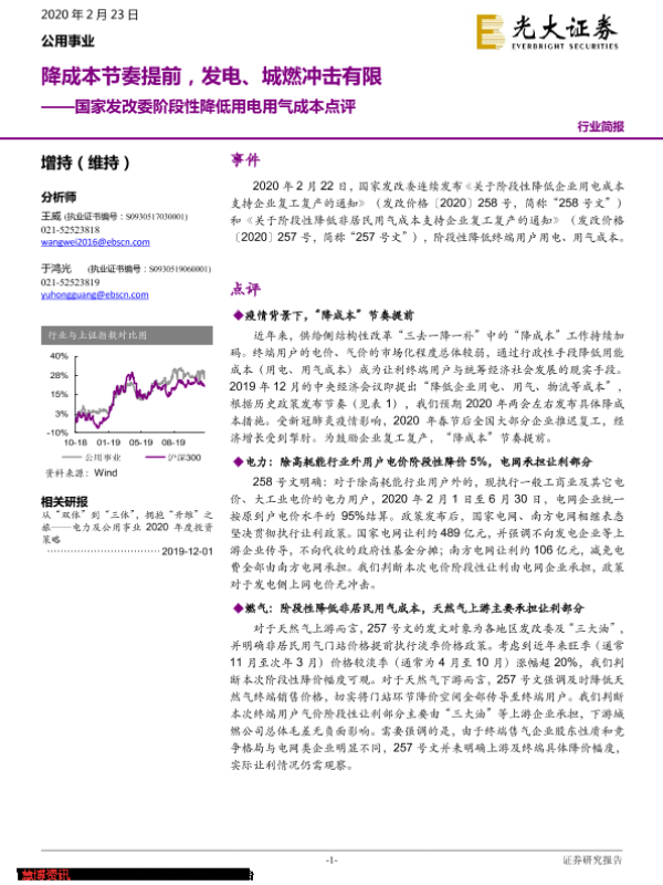【光大证券】【20200223】国家发改委阶段性降低用电用气成本点评-6页 行业研究