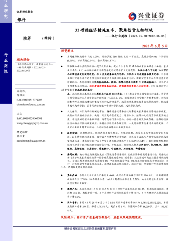 【兴业证券】【20220605】33项稳经济措施发布,聚焦信贷支持领域-15页 行业研究
