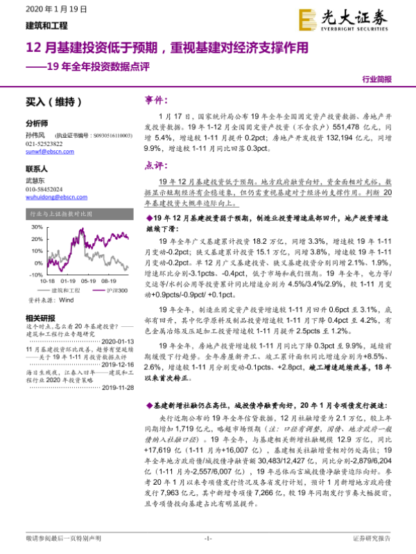 【光大证券】【20200119】12月基建投资低于预期,重视基建对经济支撑作用-5页 行业研究