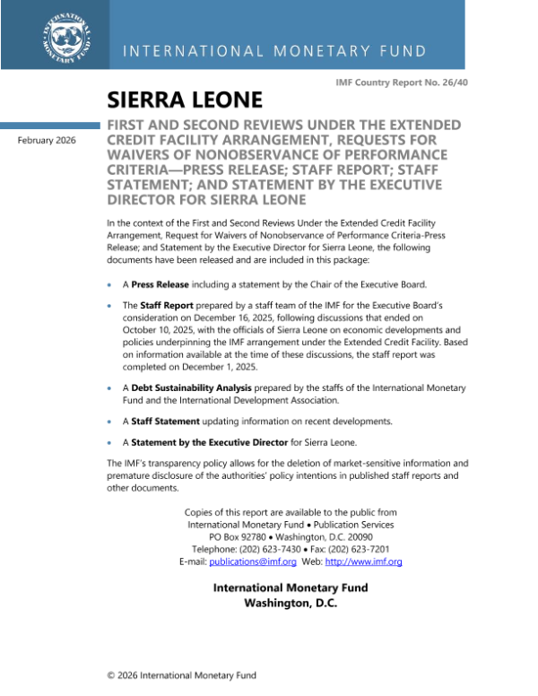 【国际货币基金组织】【December 16, 2025】Sierra Leone First and Second Reviews Under the Extended Credit Facility Arrangement, Request for Waivers of Non-Observance of Performance Criteria-115页 会议纪要