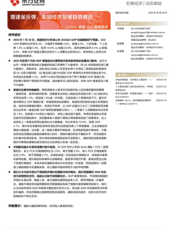 【东方证券】【20250804】2025Q2美国GDP数据点评 增速虽反弹,美国经济放缓趋势难改-5页 宏观策略