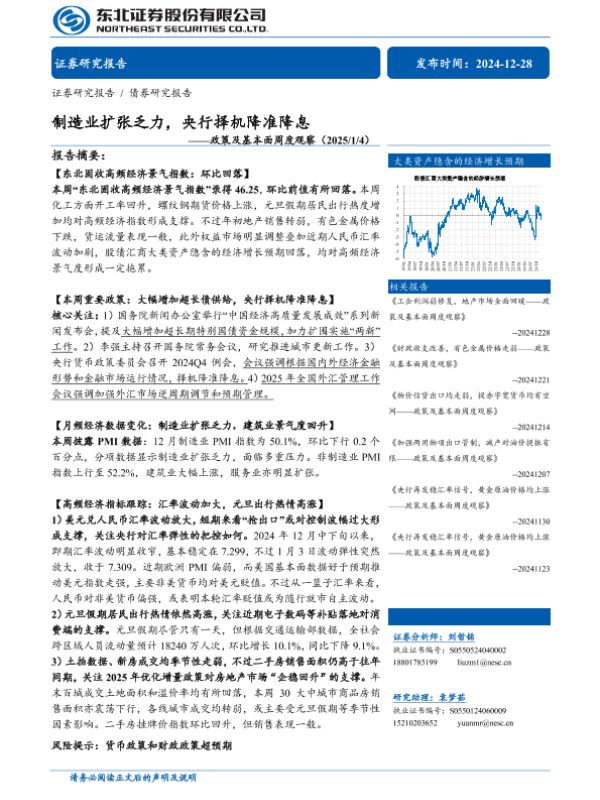 【东北证券】【20241228】政策及基本面观察:制造业扩张乏力,央行择机降准降息-27页 宏观策略