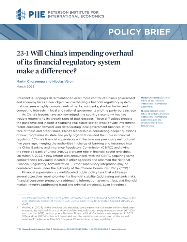 【彼得森经济研究所】【20230301】中国即将对其金融监管体系进行的全面改革会产生影响吗?-18页 行业研究