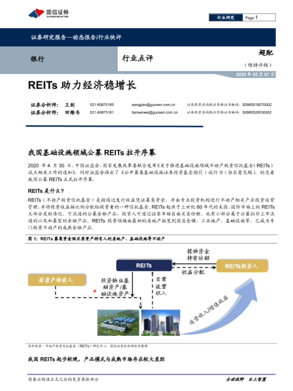【国信证券】【20200507】银行行业点评:REITs助力经济稳增长-9页 行业研究