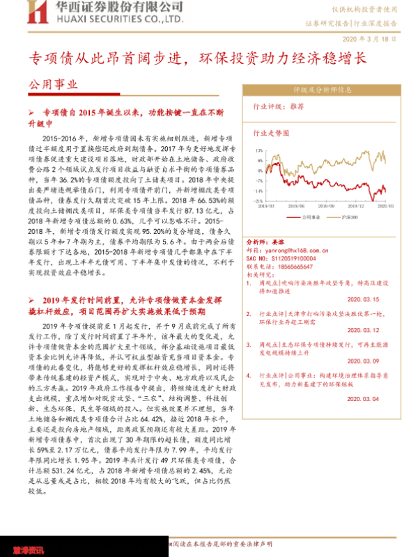 【华西证券】【20200318】专项债从此昂首阔步进,环保投资助力经济稳增长-20页 行业研究