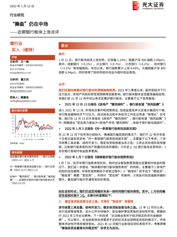 【光大证券】【20220112】近期银行板块上涨点评-“舞曲”仍在中场-5页 行业研究