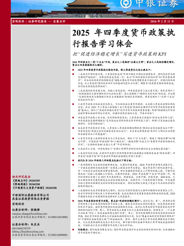 【中银证券】【202602】2025年四季度货币政策执行报告学习体会-4页 证券期货研究报告