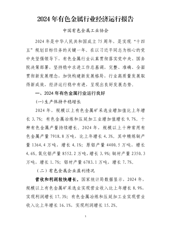 【中国有色金属工业协会】【2024】2024年有色金属行业经济运行报告-10页 行业研究
