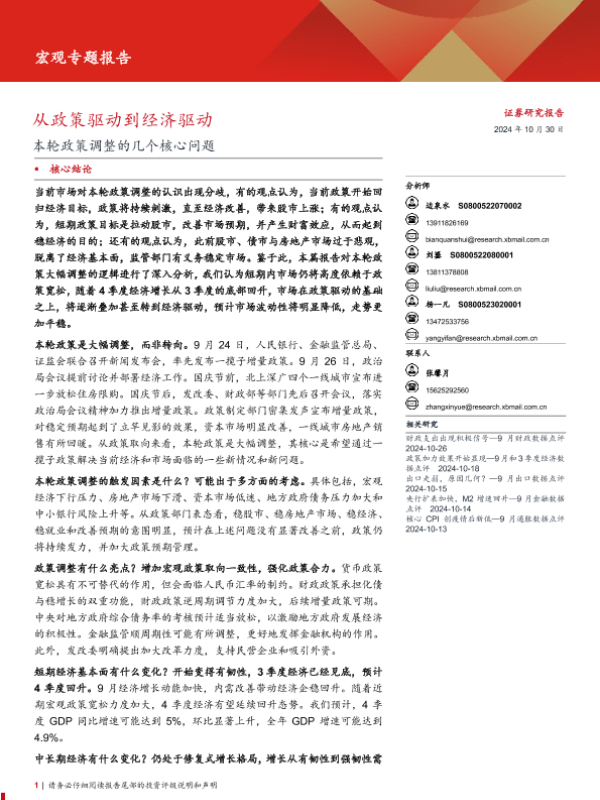 【西部证券】【20241030】本轮政策调整的几个核心问题:从政策驱动到经济驱动-18页 宏观策略