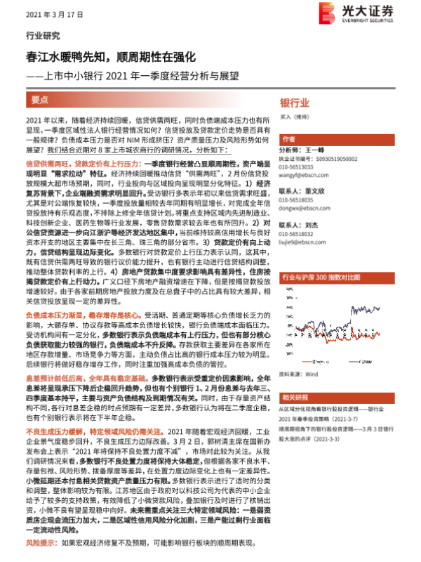 【光大证券】【20210317】上市中小银行2021年一季度经营分析与展望-9页 行业研究