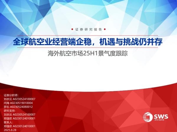 【SWS RESEARCH】【202508】海外航空行业市场25H1景气度跟踪-全球航空业经营端企稳,机遇与挑战仍并存-33页 证券期货研究报告