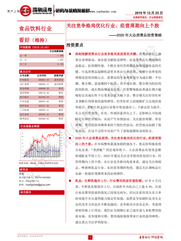 【国融证券】【20191225】食品饮料行业2020年大众消费品投资策略-25页 证券期货研究报告