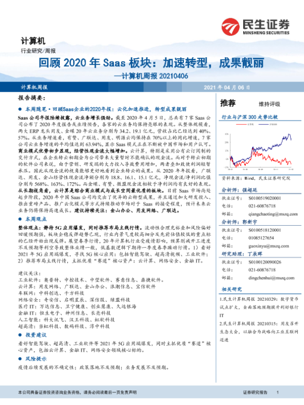 【民生证券】【20210406】20210406-民生证券-计算机周报:2020年Saas板块:加速转型,成果靓丽-19页 行业研究
