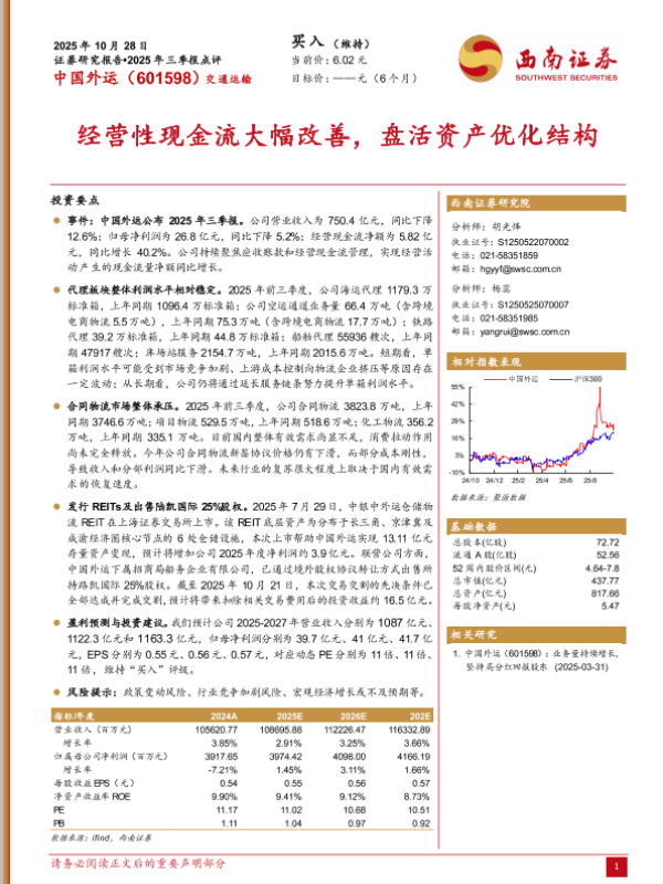 【西南证券】【202510】中国外运(601598) 2025年三季报点评-5页 证券期货研究报告