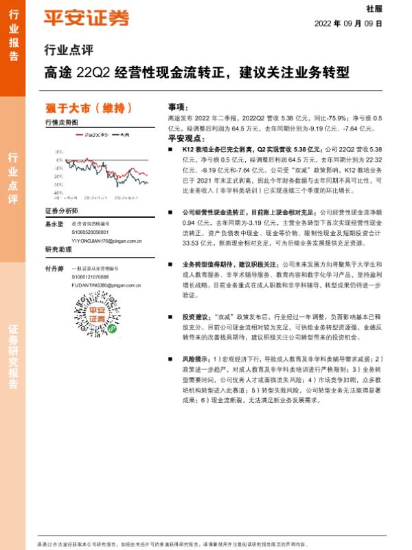 【平安证券】【20220909】社服行业点评:高途22Q2经营性现金流转正,建议关注业务转型-2页 行业研究