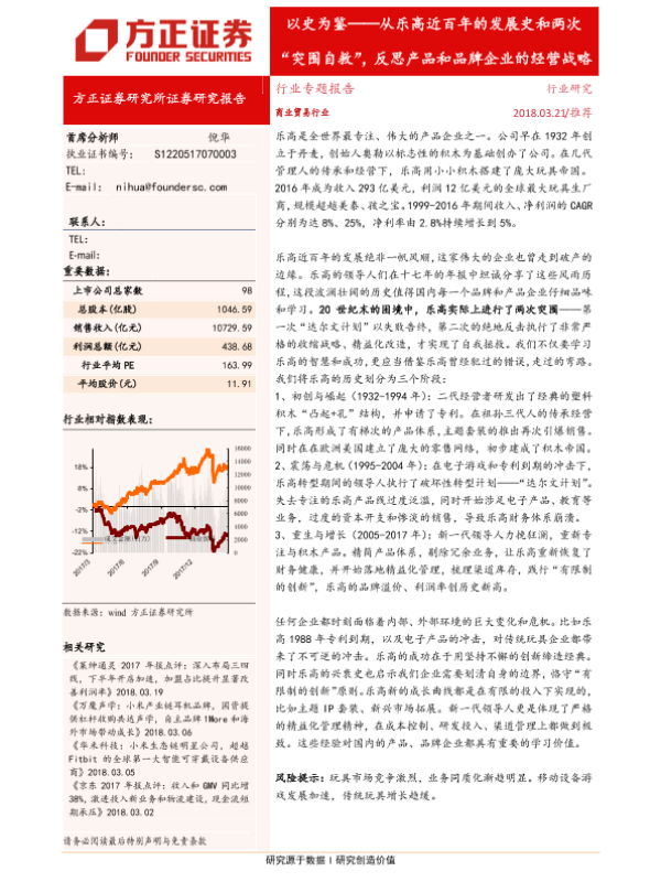 【方正证券】【20180321】商业贸易行业专题报告:以史为鉴~从乐高近百年的发展史和两次“突围自救”,反思产品和品牌企业的经营战略-15页 行业研究