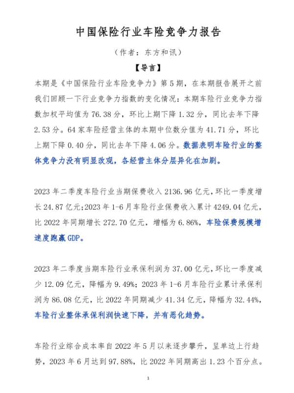 【东方和讯】【20230630】2023年上半年车险竞争力报告-27页 行业研究