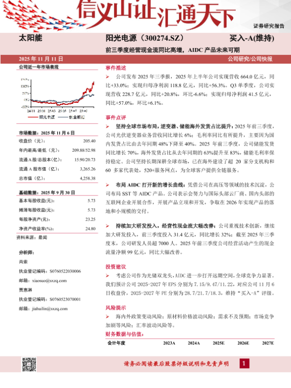 【山西证券】【202511】前三季度经营现金流同比高增,AIDC产品未来可期-5页 证券期货研究报告