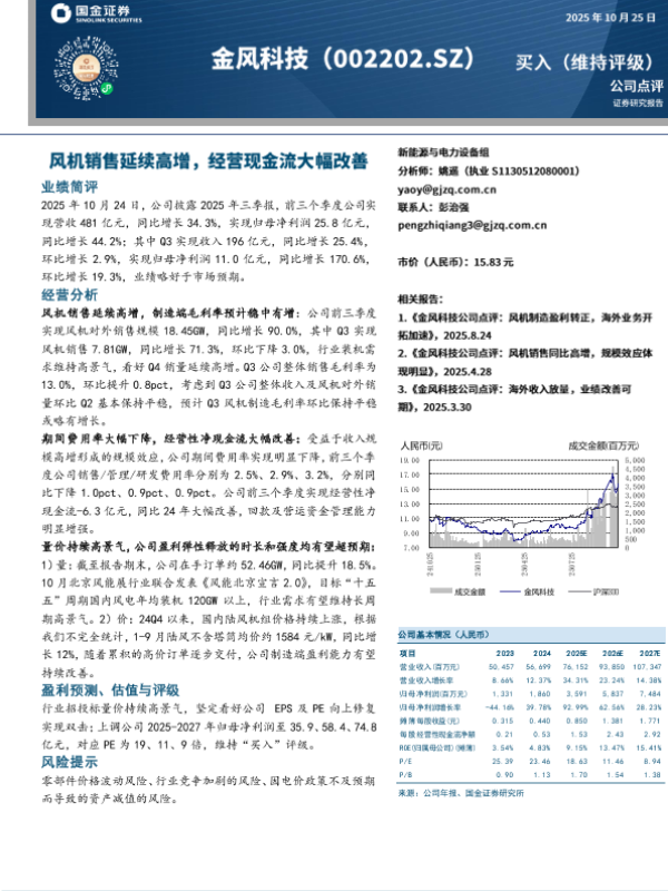 【国金证券】【202510】风机销售延续高增,经营现金流大幅改善-4页 证券期货研究报告