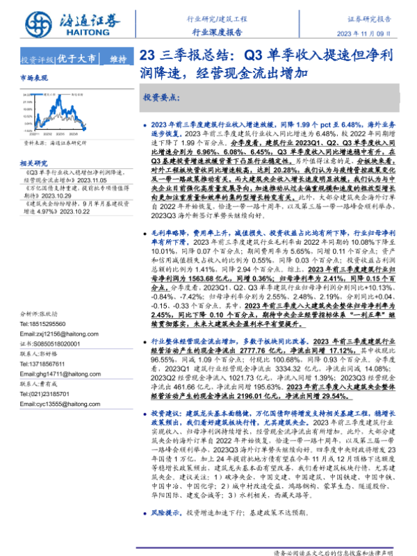 【海通证券】【20231109】23三季报总结:Q3单季收入提速但净利润降速,经营现金流出增加-24页 行业研究