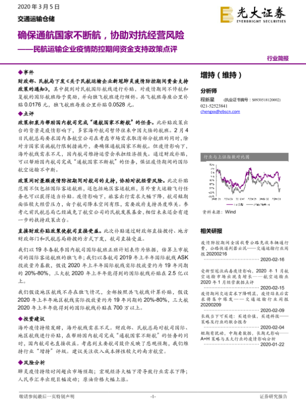 【光大证券】【20200305】民航运输企业疫情防控期间资金支持政策点评:确保通航国家不断航,协助对抗经营风险-5页 证券期货研究报告