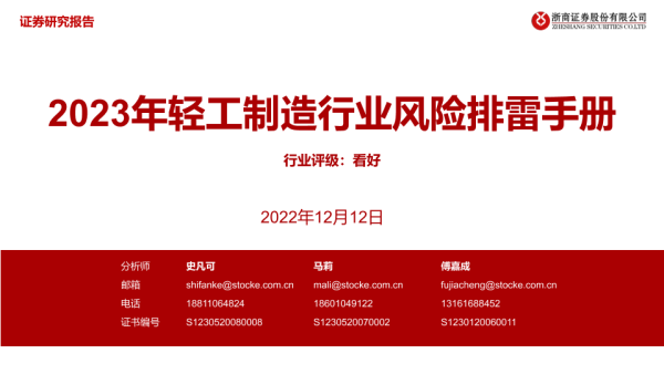 【浙商证券】【20221212】2023年轻工制造行业风险排雷手册-23页 行业研究