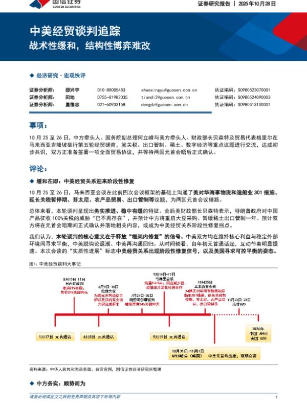 【国信证券】【202510】中美经贸谈判追踪:战术性缓和,结构性博弈难改-6页 证券期货研究报告