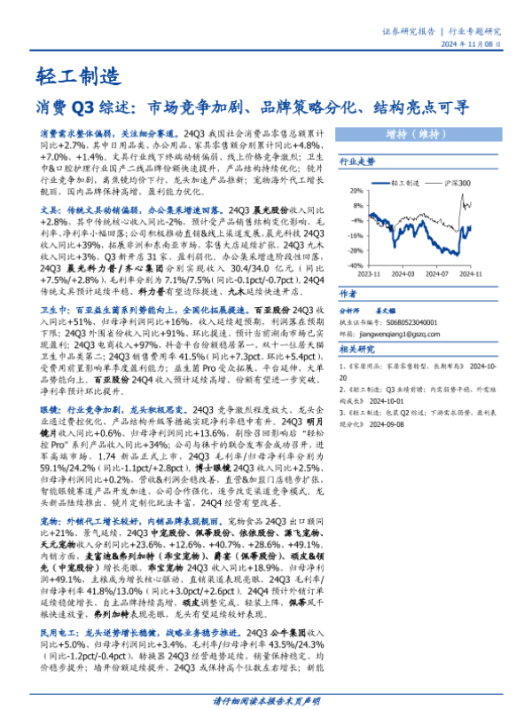 【国盛证券】【20241108】轻工制造行业消费Q3综述:市场竞争加剧、品牌策略分化、结构亮点可寻-11页 行业研究