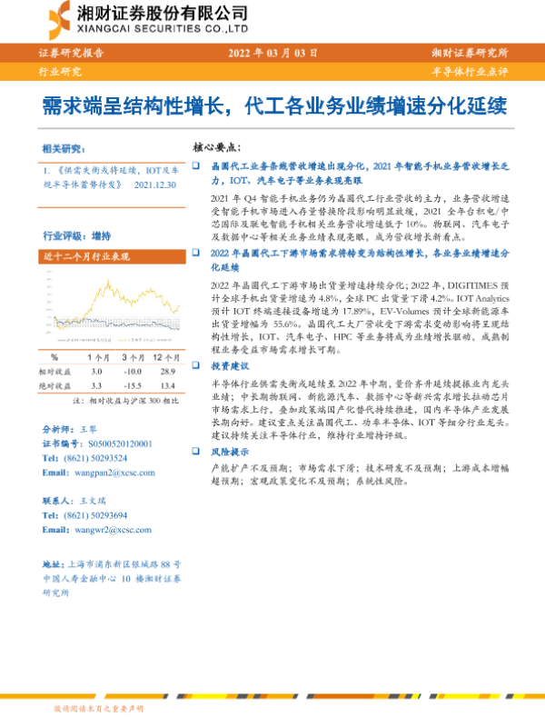 【湘财证券】【20220303】20220303-湘财证券-半导体行业点评:需求端呈结构性增长,代工各业务业绩增速分化延续-7页 行业研究