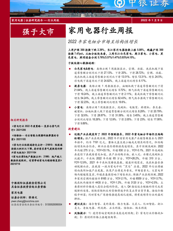【中银证券】【20220109】2022年家电细分市场呈结构性增长-31页 行业研究