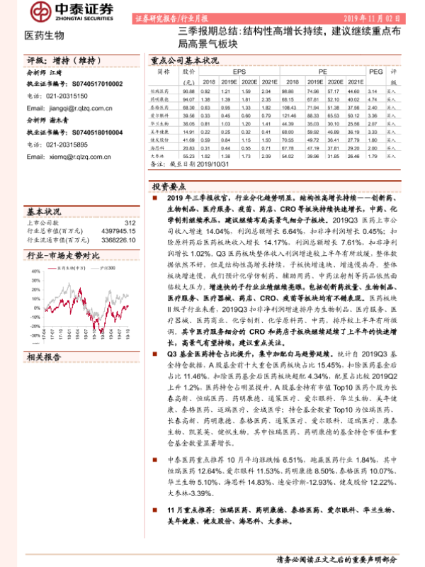 【中泰证券】【20191102】医药生物三季报期总结:结构性高增长持续,建议继续重点布局高景气板块-20页 行业研究