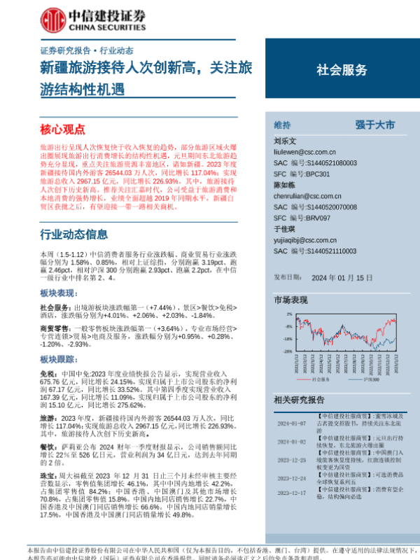 【中信建投证券】【20240115】社会服务行业动态:新疆旅游接待人次创新高,关注旅游结构性机遇-27页 行业研究