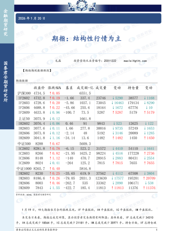 【国泰君安期货】【202601】期指:结构性行情为主-4页 证券期货研究报告