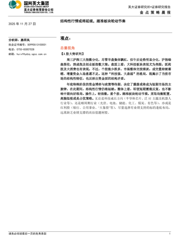 【英大证券】【202511】结构性行情或将延续,踏准板块轮动节奏-4页 证券期货研究报告