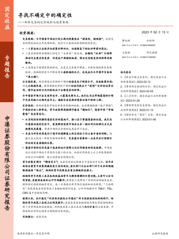 【申港证券】【20230213】利率交易的定价规则与投资策略:寻找不确定中的确定性-20页 行业研究