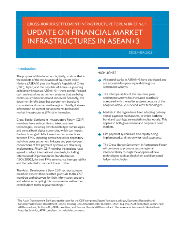 【亚洲开发银行】【202312】亚开行-东盟+3金融市场基础设施更新-8页 行业研究
