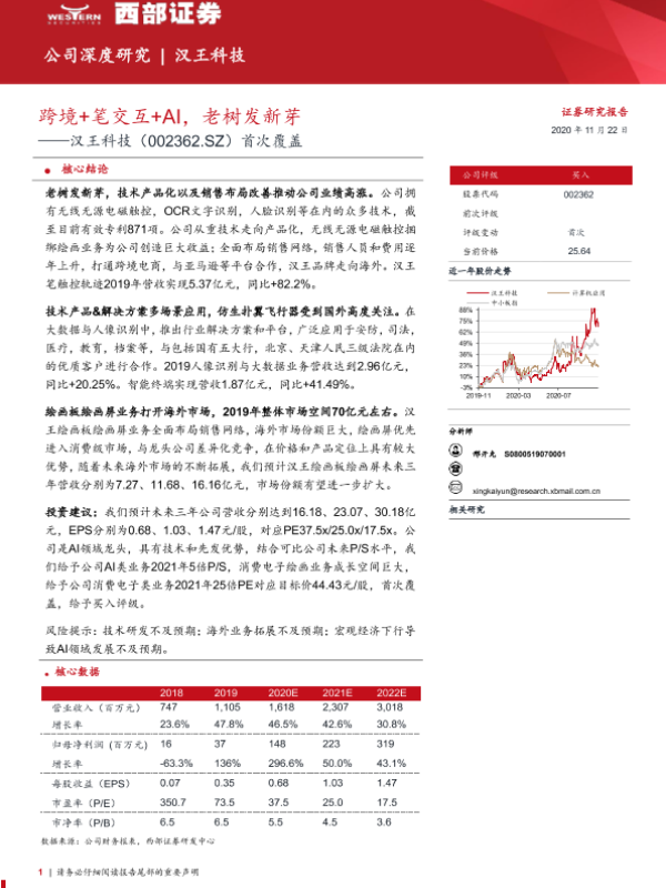 【西部证券】【20201122】跨境+笔交互+AI,老树发新芽——汉王科技(002362.SZ)首次覆盖-39页 行业研究